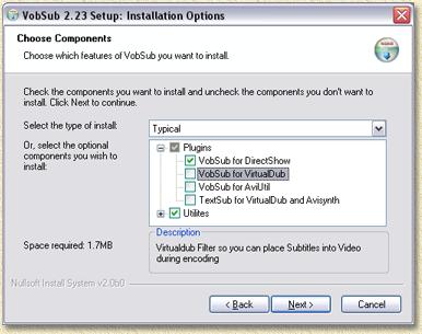 If you do not wish to have VobSub display subtitles (for example when you're using FFDShow), then only install the Virtualdub plugin.